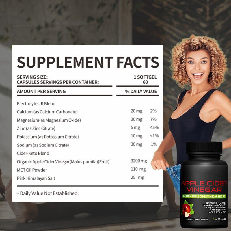 Apfelessig-Kapseln, – 3200 mg,Gewichtsmanagement, Entgiftung und Reinigung