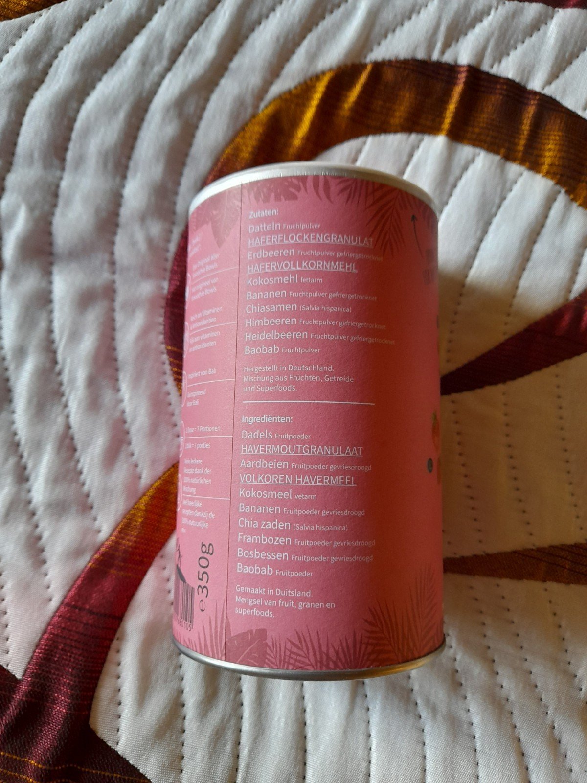 | Inhaltsstoffe | Haferflockenmehl,Erdbeeren,Kokosmehl,Chiasamen, Heidelbeeren usw |