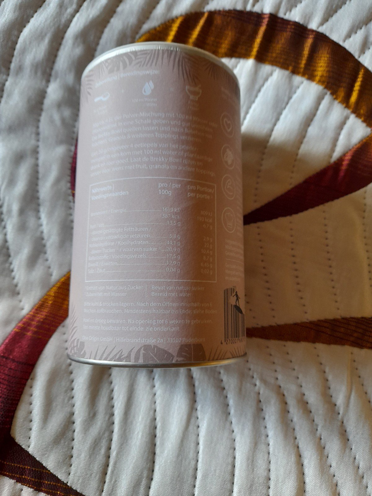 | Inhaltsstoffe | Haferflockenmehl, Chiasamen, Datteln, Kakaobohnen usw |