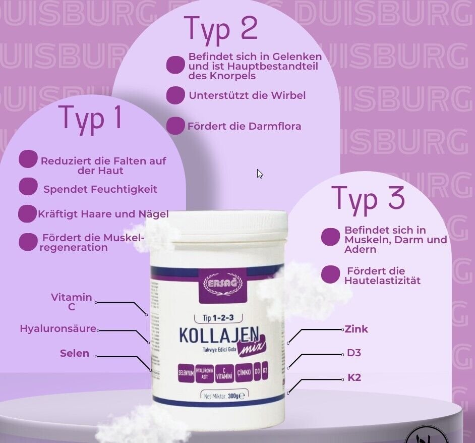 | Inhaltsstoffe | Kollagen, Kollagen Typ I, Kollagen Typ II, Kollagen Typ III |