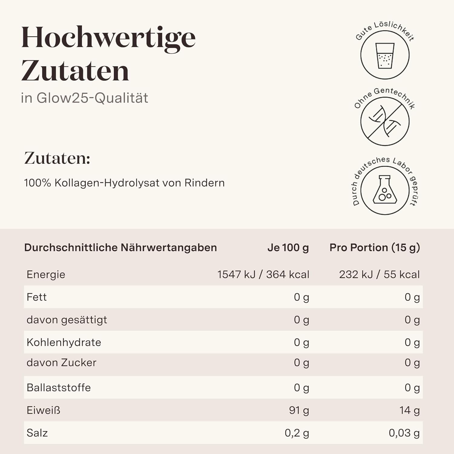10 reviews for Glow25 Bioaktives Kollagen Hydrolysat Pulver – 500g
