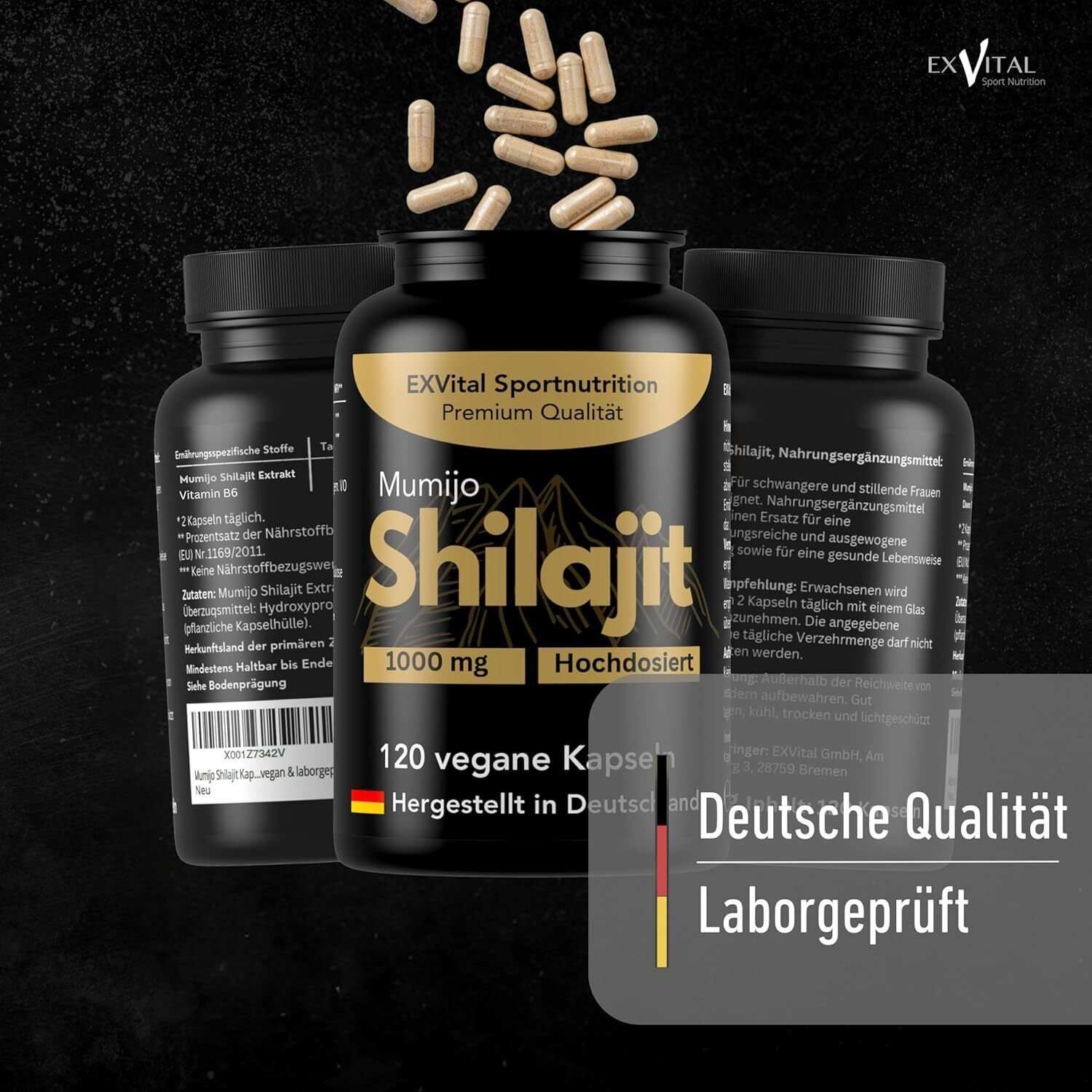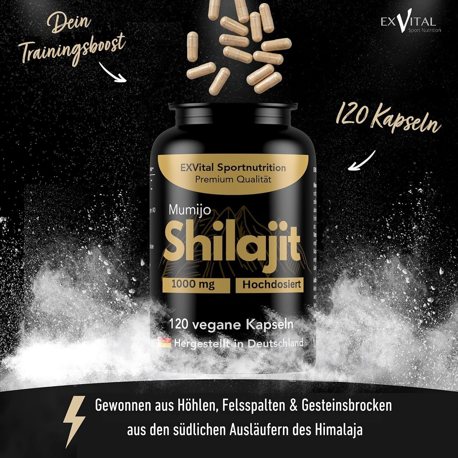 Mumijo Shilajit Kapseln, hochdosiert 1000mg von EXVital, Fulvin- und Huminsäuren