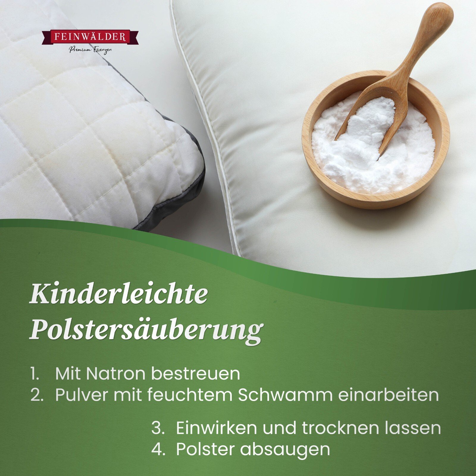 Feinwälder Natron trägt das Merkmal „Lebensmittelqualität“. Das weiße Pulver ist 100 % vegan, natürlich abbaubar und somit ein umweltfreundliches Reinigungsmittel, das weder Gewässer, noch Pflanzen & Tiere belastet.