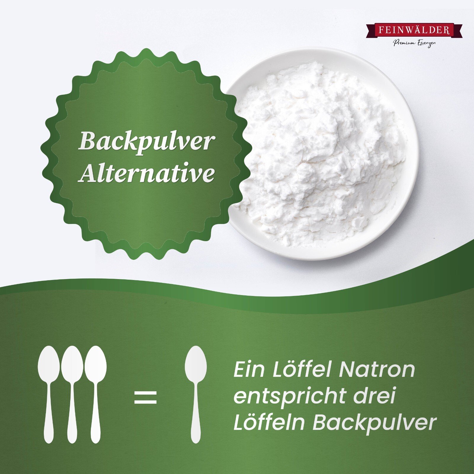 Feinwälder Natron wird in Lebensmittelqualität E550ii und in Pulverform geliefert. Es ist geruch- & farblos, vegan & glutenfrei, natürlich abbaubar & ohne jegliche Zusatzstoffe.