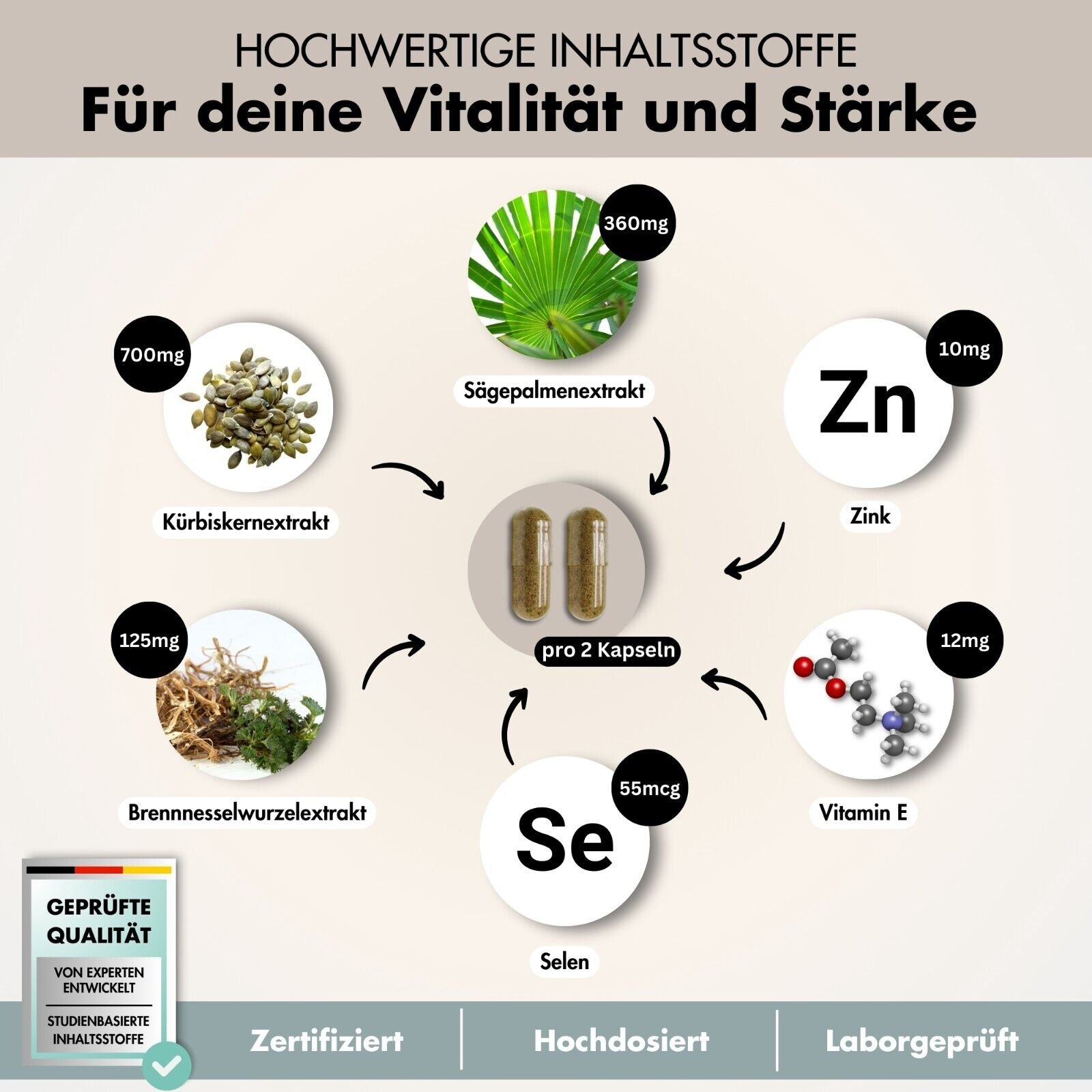 Prostata Kapseln 180 Stück, Prosta Plus Komplex, vegan, geprüft & hochdosiert