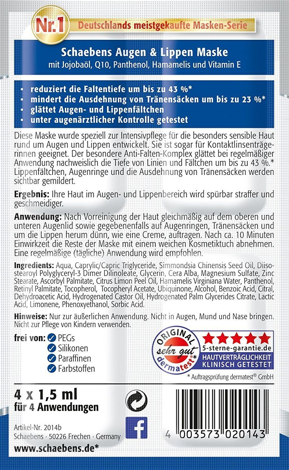 Schaebens Eye & Lip Lifting Masks 20 Treatments