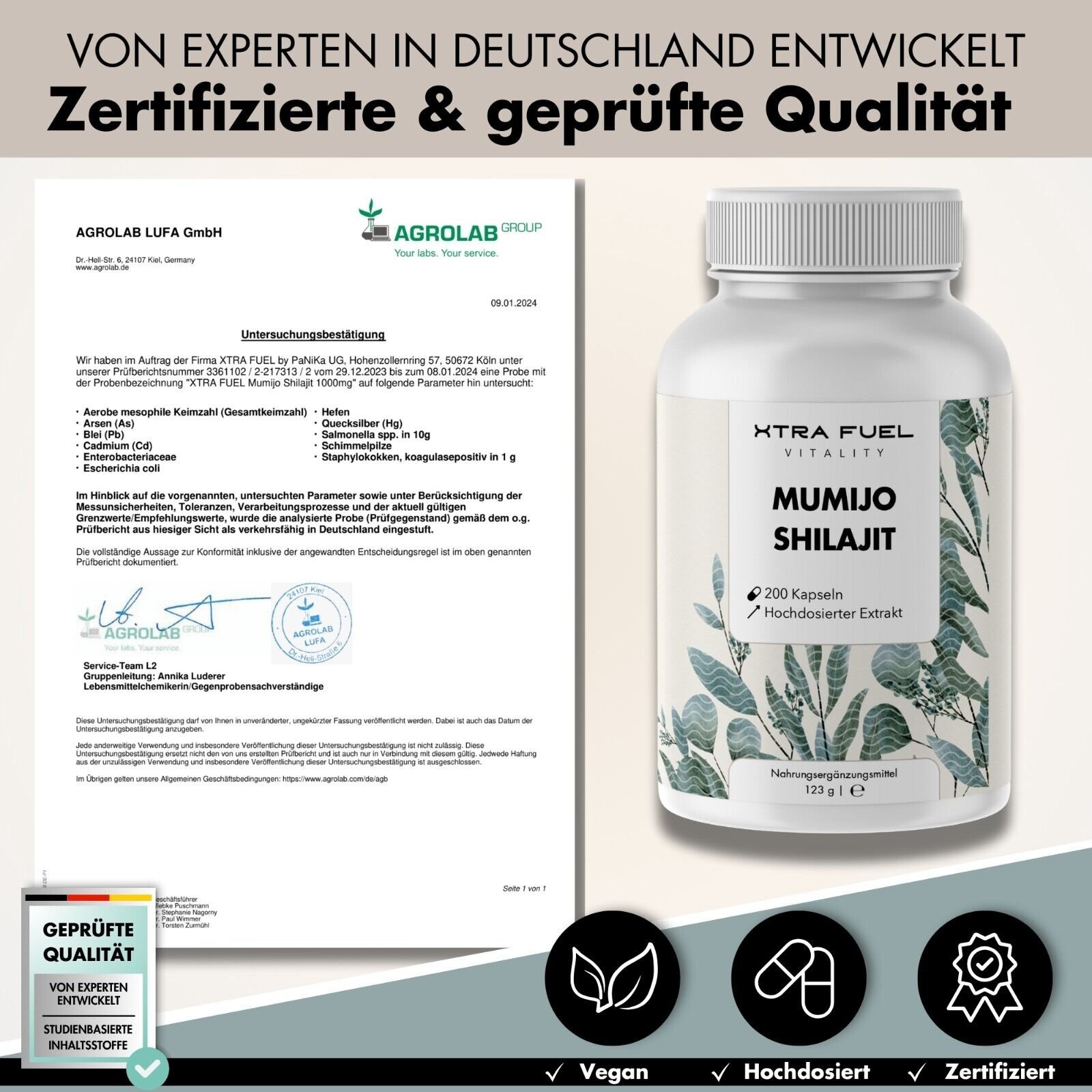 Shilajit Kapseln 200 Stück, Mumijo Shilajit Extrakt – 100% rein, vegan & geprüft
